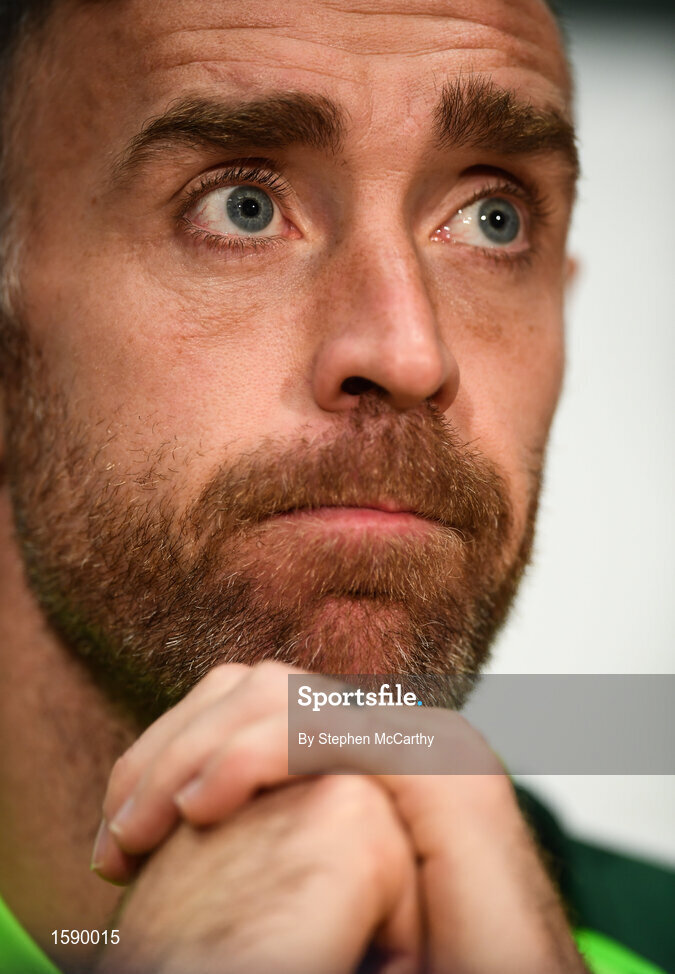 15 October 2018; Richard Keogh during a Republic of Ireland press conference at the FAI National Training Centre in Abbotstown, Dublin. Photo by Stephen McCarthy/Sportsfile