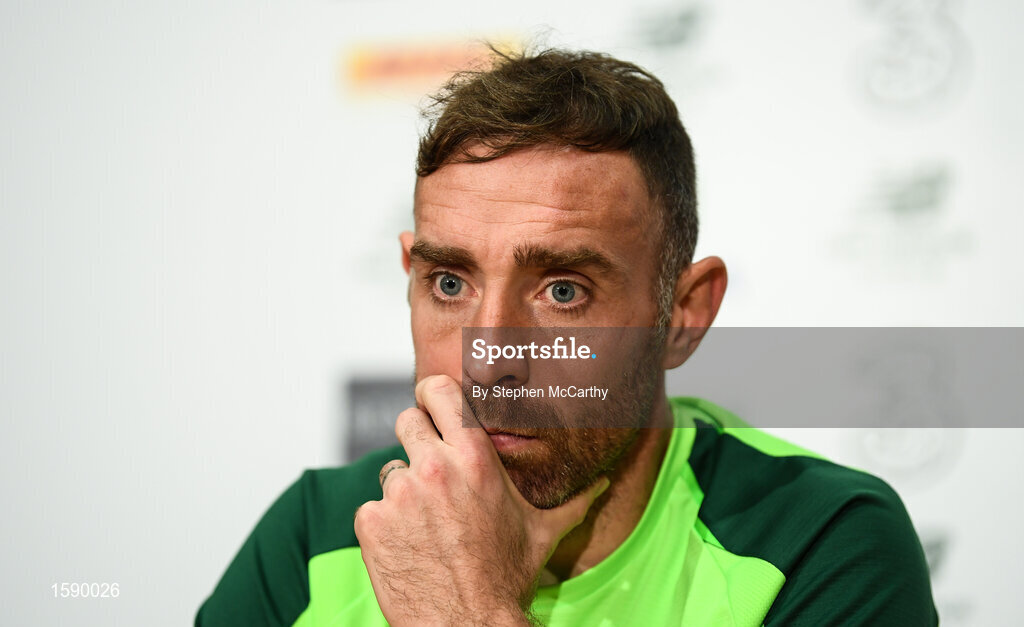 15 October 2018; Richard Keogh during a Republic of Ireland press conference at the FAI National Training Centre in Abbotstown, Dublin. Photo by Stephen McCarthy/Sportsfile