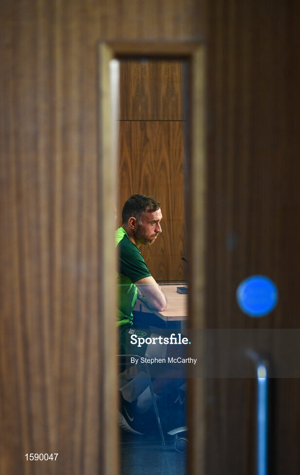 15 October 2018; Richard Keogh during a Republic of Ireland press conference at the FAI National Training Centre in Abbotstown, Dublin. Photo by Stephen McCarthy/Sportsfile