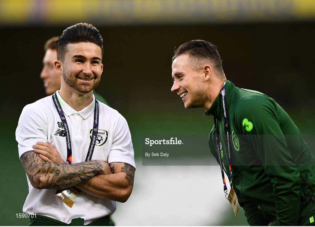 16 October 2018; Sean Maguire, left, and Alan Browne of Republic of Ireland prior to the UEFA Nations League B group four match between Republic of Ireland and Wales at the Aviva Stadium in Dublin. Photo by Seb Daly/Sportsfile