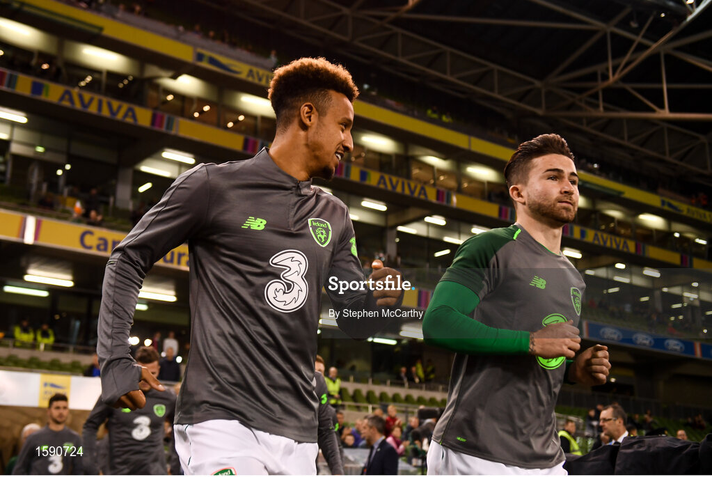 16 October 2018; Callum Robinson, left, and Sean Maguire of Republic of Ireland prior to the UEFA Nations League B group four match between Republic of Ireland and Wales at the Aviva Stadium in Dublin. Photo by Stephen McCarthy/Sportsfile