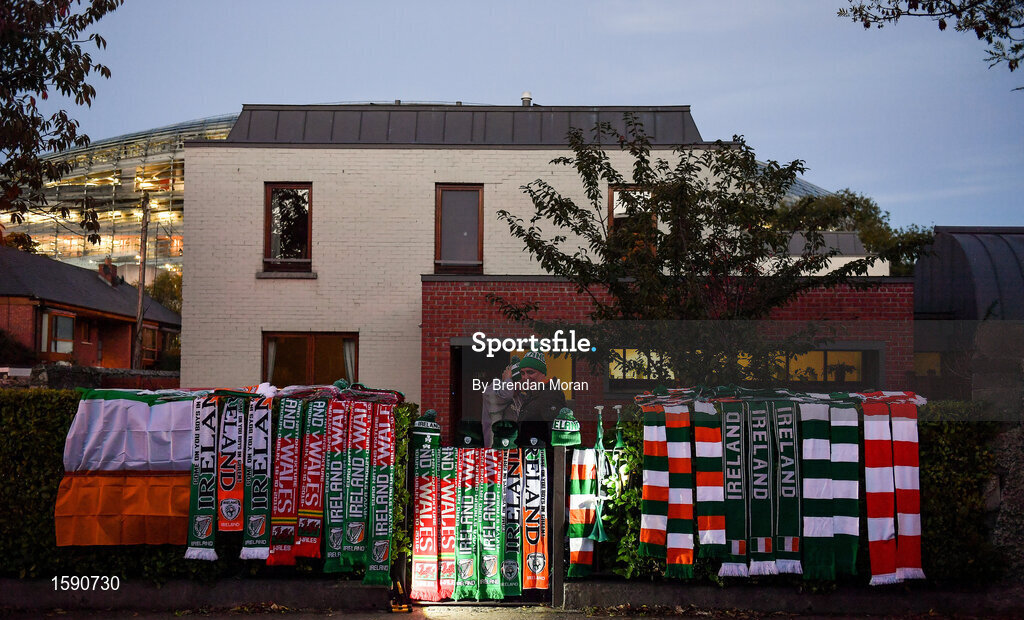 16 October 2018; Merchandise on sale outside the stadium prior to the UEFA Nations League B group four match between Republic of Ireland and Wales at the Aviva Stadium in Dublin. Photo by Brendan Moran/Sportsfile