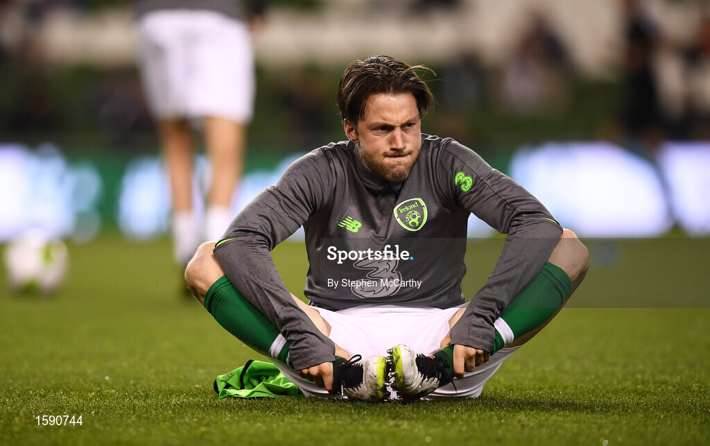 16 October 2018; Harry Arter of Republic of Ireland stretches prior to the UEFA Nations League B group four match between Republic of Ireland and Wales at the Aviva Stadium in Dublin. Photo by Stephen McCarthy/Sportsfile