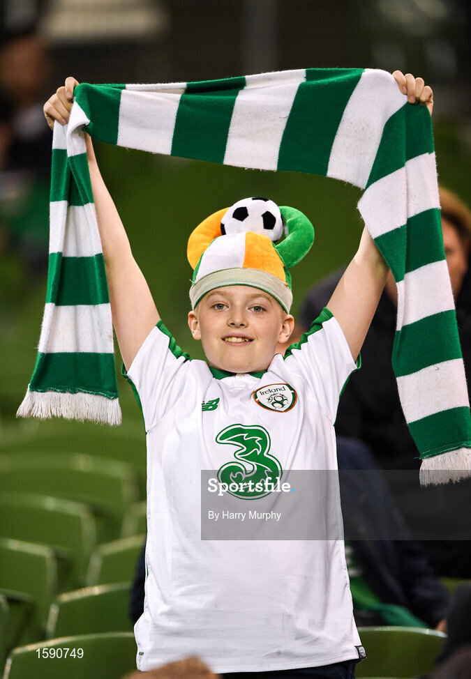 16 October 2018; Republic of Ireland supporter Evan O'Houlahan, age 12, from Douglas, Co Cork, prior to the UEFA Nations League B group four match between Republic of Ireland and Wales at the Aviva Stadium in Dublin. Photo by Harry Murphy/Sportsfile