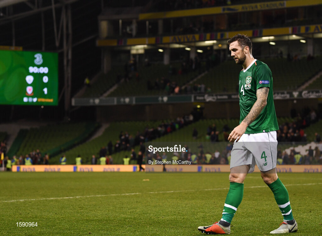 16 October 2018; Shane Duffy of Republic of Ireland leaves the pitch following the UEFA Nations League B group four match between Republic of Ireland and Wales at the Aviva Stadium in Dublin. Photo by Stephen McCarthy/Sportsfile