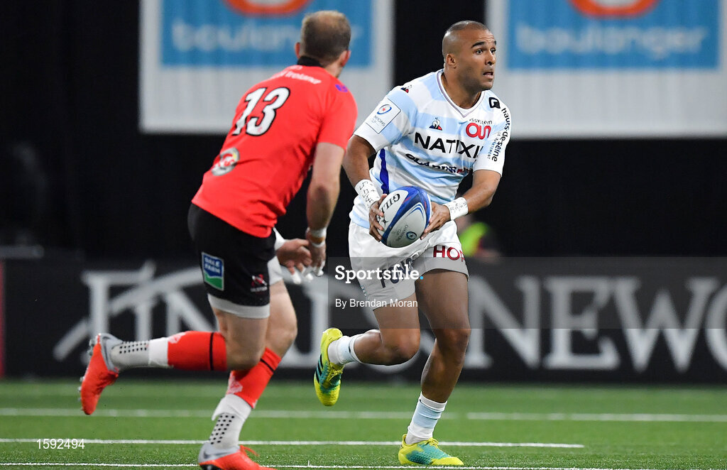 20 October 2018; Simon Zebo of Racing 92 in action against Will Addison of Ulster during the Heineken Champions Cup Pool 4 Round 2 match between Racing 92 and Ulster at Paris La Defence Arena, in Paris, France. Photo by Brendan Moran/Sportsfile