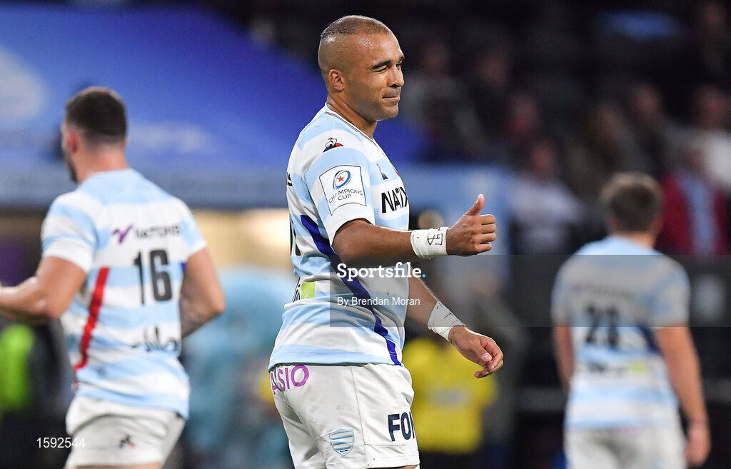 20 October 2018; Simon Zebo of Racing 92 celebrates after scoring his side's fifth try during the Heineken Champions Cup Pool 4 Round 2 match between Racing 92 and Ulster at Paris La Defence Arena, in Paris, France. Photo by Brendan Moran/Sportsfile