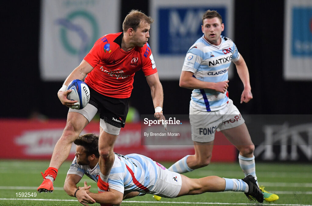20 October 2018; Will Addison of Ulster breaks from the tackle of Leonard Paris of Racing 92 during the Heineken Champions Cup Pool 4 Round 2 match between Racing 92 and Ulster at Paris La Defence Arena, in Paris, France. Photo by Brendan Moran/Sportsfile