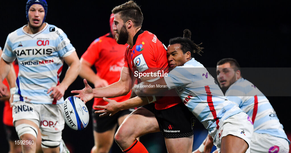 20 October 2018; Stuart McCloskey of Ulster is tackled by Teddy Thomas of Racing 92 during the Heineken Champions Cup Pool 4 Round 2 match between Racing 92 and Ulster at Paris La Defence Arena, in Paris, France. Photo by Brendan Moran/Sportsfile