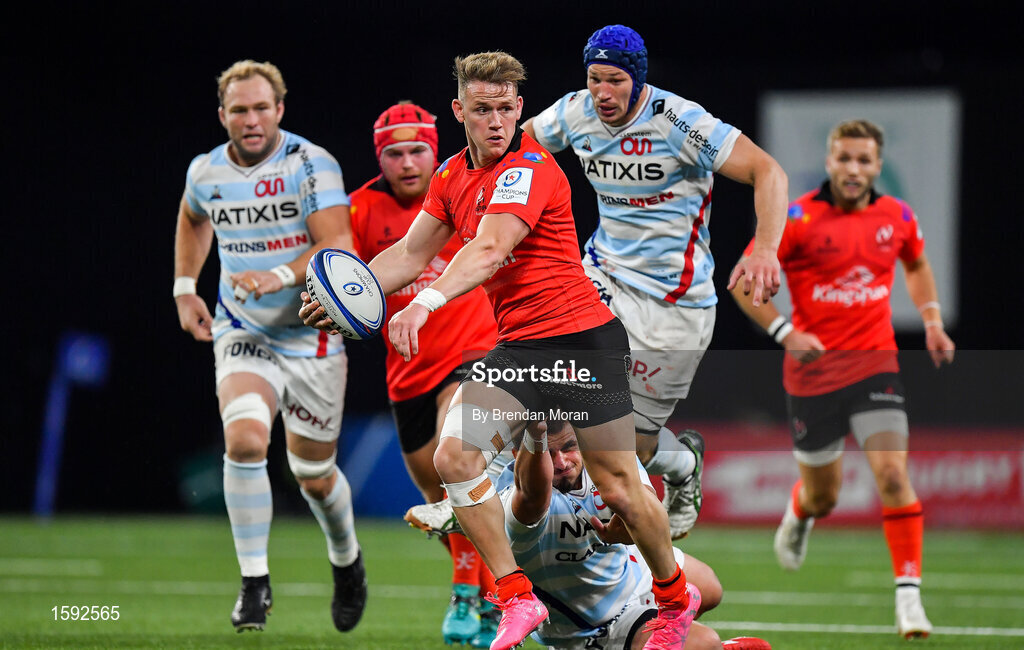 20 October 2018; Craig Gilroy of Ulster is tackled by Guram Gogichashvili of Racing 92 during the Heineken Champions Cup Pool 4 Round 2 match between Racing 92 and Ulster at Paris La Defence Arena, in Paris, France. Photo by Brendan Moran/Sportsfile
