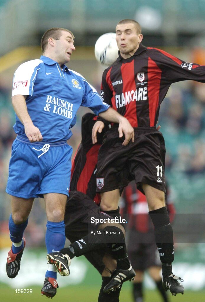 24 October 2004; Alan Reynolds, Longford Town, in action against Shane Barrett, Waterford United. 2004 FAI Carlsberg Cup Final, Longford Town v Waterford United, Lansdowne Road, Dublin. Picture credit; Matt Browne / SPORTSFILE