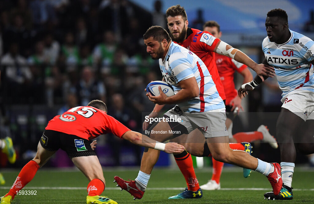 20 October 2018; Guram Gogichashvili of Racing 92 in action against Michael Lowry of Ulster during the Heineken Champions Cup Round Pool 4 Round 2 between Racing 92 and Ulster at Paris La Defence Arena, in Paris, France. Photo by Brendan Moran/Sportsfile