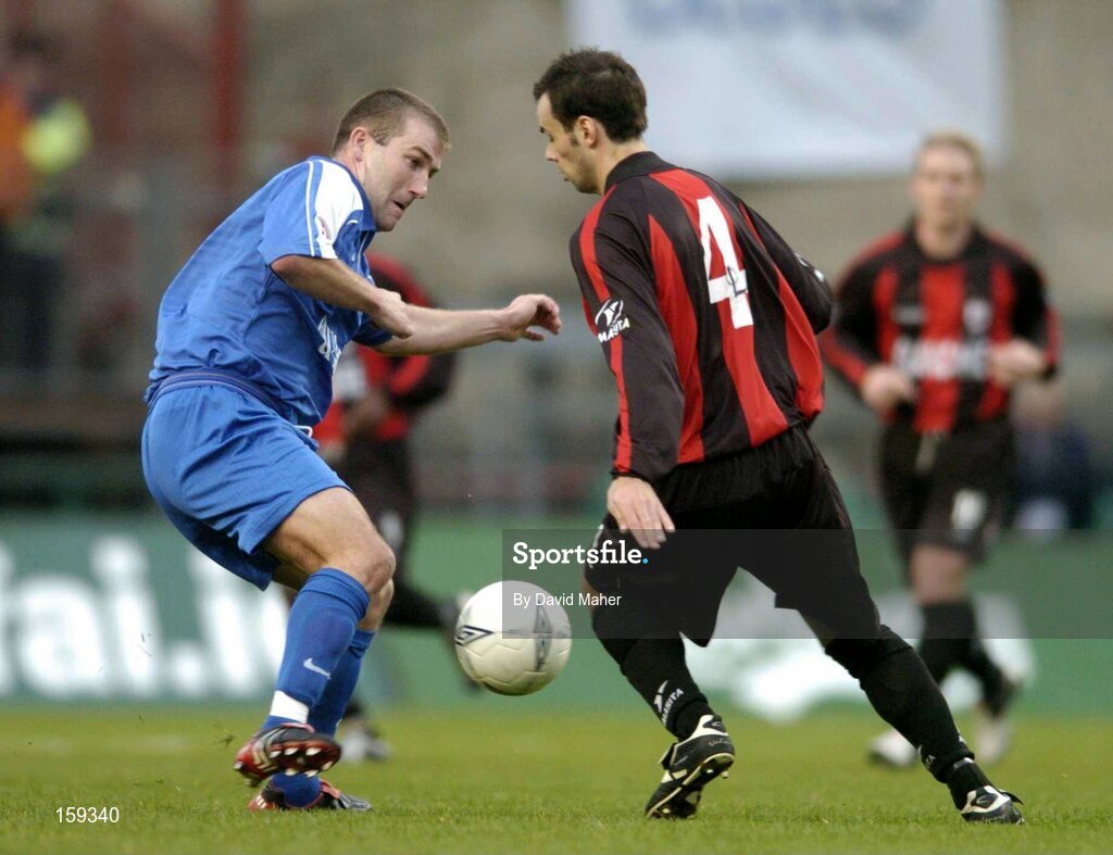 24 October 2004; John Martin, Longford Town, in action against Alan Reynolds, Waterford United. 2004 FAI Carlsberg Cup Final, Longford Town v Waterford United, Lansdowne Road, Dublin. Picture credit; David Maher / SPORTSFILE