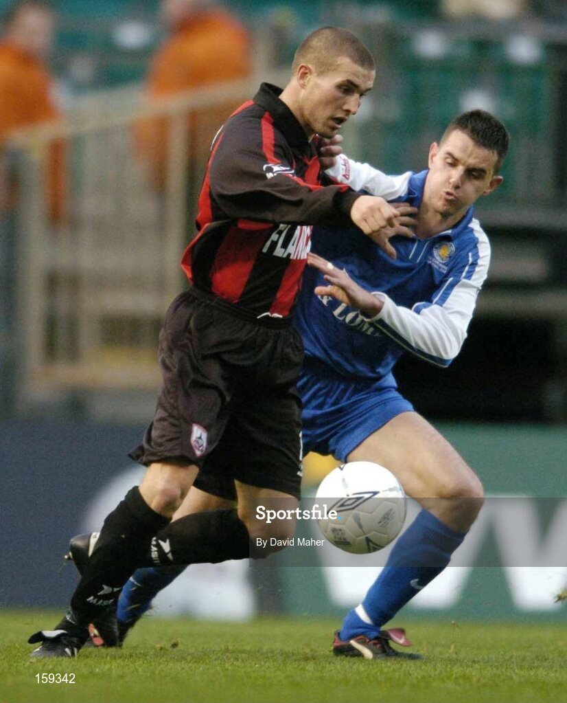 24 October 2004; Shane Barrett, Longford Town, in action against Alan Carey, Waterford United. 2004 FAI Carlsberg Cup Final, Longford Town v Waterford United, Lansdowne Road, Dublin. Picture credit; David Maher / SPORTSFILE