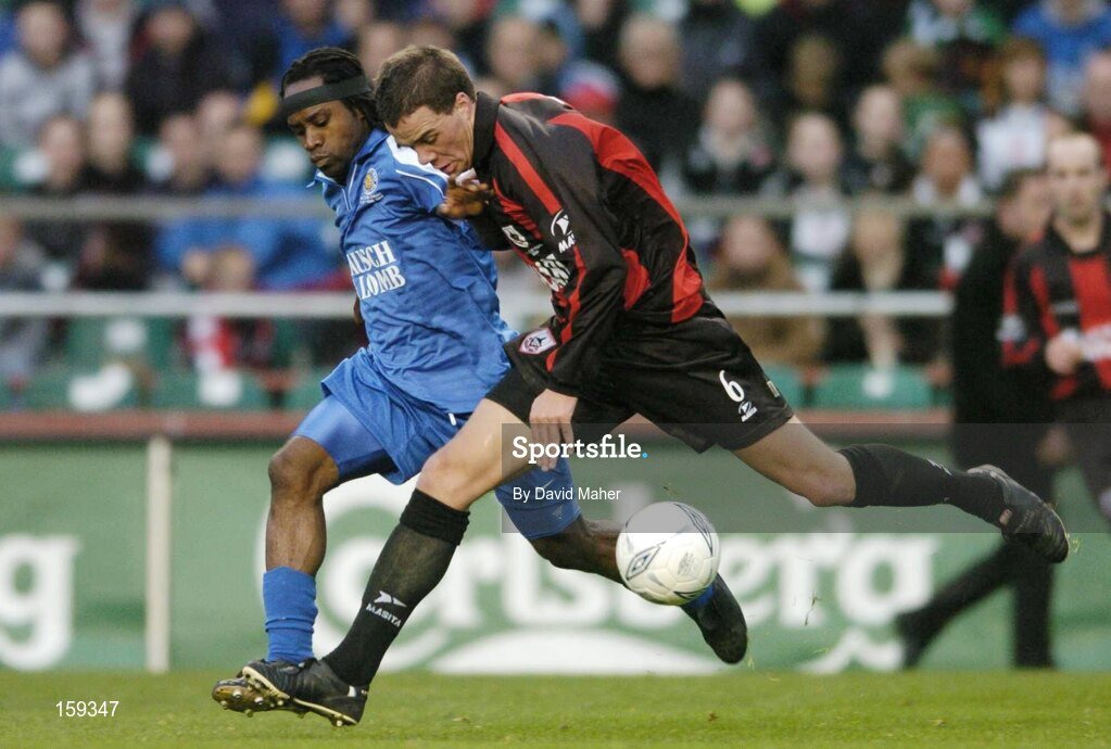 24 October 2004; Graham Gartland, Longford Town, in action against Jose Quitongo, Waterford United. 2004 FAI Carlsberg Cup Final, Longford Town v Waterford United, Lansdowne Road, Dublin. Picture credit; David Maher / SPORTSFILE