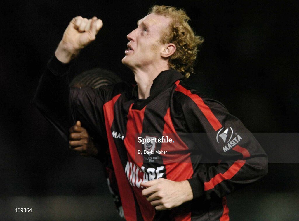 24 October 2004; Paul Keegan, Longford Town, celebrates after scoring his sides winning goal. 2004 FAI Carlsberg Cup Final, Longford Town v Waterford United, Lansdowne Road, Dublin. Picture credit; David Maher / SPORTSFILE