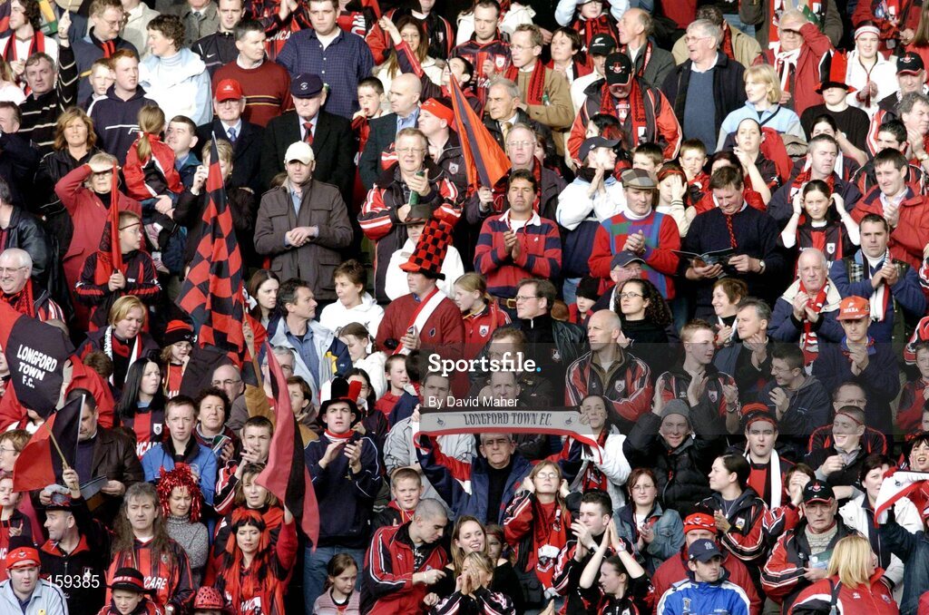 24 October 2004; Longford Town supporters cheer on their team during the game. 2004 FAI Carlsberg Cup Final, Longford Town v Waterford United, Lansdowne Road, Dublin. Picture credit; David Maher / SPORTSFILE