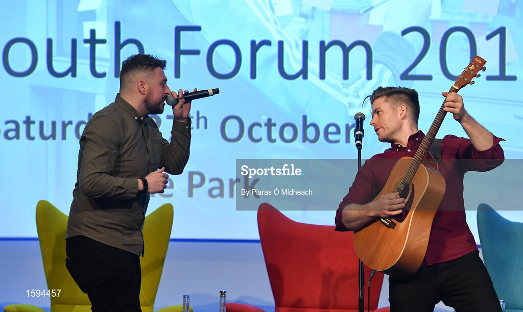 27 October 2018; The 2 Johnnie's performing during the #GAAyouth Forum 2018 at Croke Park in Dublin. Photo by Piaras Ó Mídheach/Sportsfile