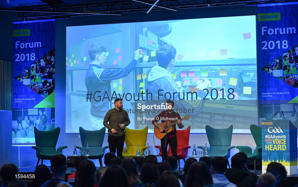 27 October 2018; The 2 Johnnie's performing during the #GAAyouth Forum 2018 at Croke Park in Dublin. Photo by Piaras Ó Mídheach/Sportsfile