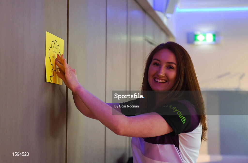 27 October 2018; Aine McParland posting her thoughts on the wall at the Youthreps consultation during the #GAAyouth Forum 2018 at Croke Park in Dublin. Photo by Eóin Noonan/Sportsfile