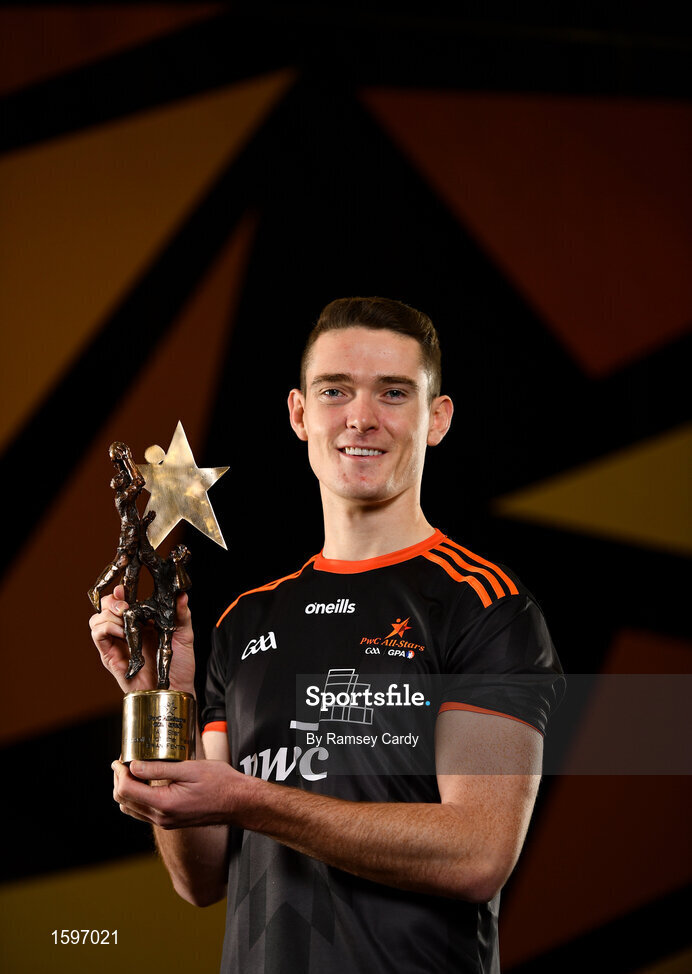 2 November 2018; Dublin footballer Brian Fenton with his PwC footballer of the year award at the PwC All Stars 2018 at the Convention Centre in Dublin. Photo by Ramsey Cardy/Sportsfile
