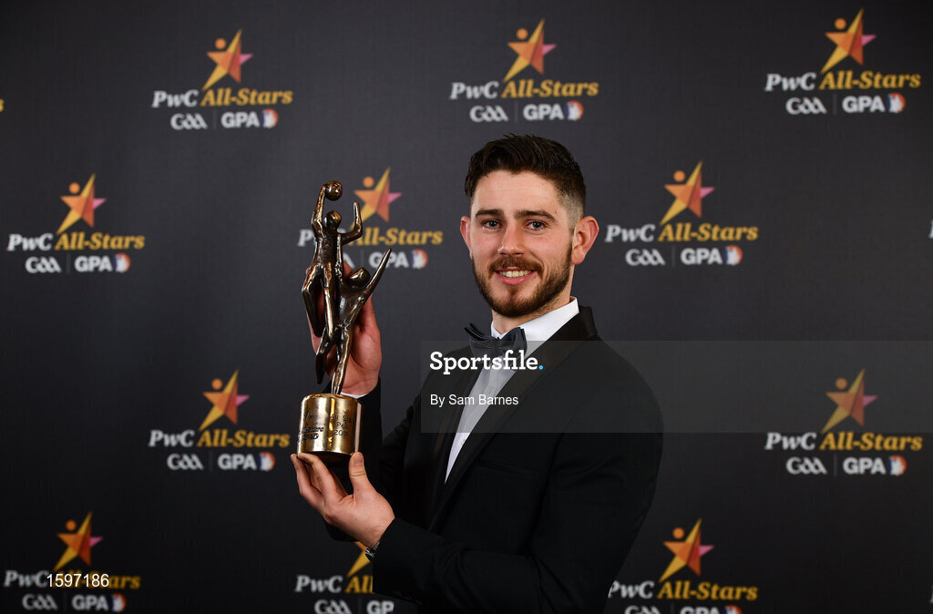 2 November 2018; Donegal footballer Ryan McHugh with his All-Star award at the PwC All Stars 2018 at the Convention Centre in Dublin. Photo by Sam Barnes/Sportsfile
