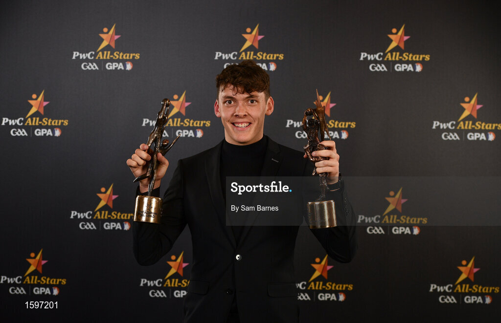 2 November 2018; Kerry footballer David Clifford with his All Star award and Young Player of the Year award at the PwC All Stars 2018 at the Convention Centre in Dublin. Photo by Sam Barnes/Sportsfile