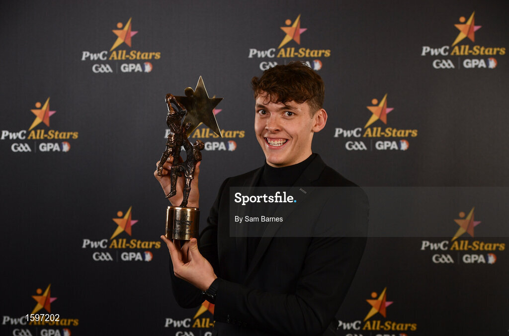 2 November 2018; Kerry footballer David Clifford with his Young Player of the Year award at the PwC All Stars 2018 at the Convention Centre in Dublin. Photo by Sam Barnes/Sportsfile