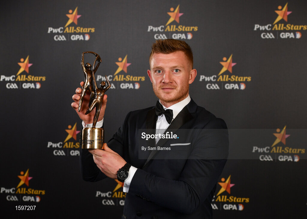 2 November 2018; Galway hurler Joe Canning with his All-Star award at the PwC All Stars 2018 at the Convention Centre in Dublin. Photo by Sam Barnes/Sportsfile