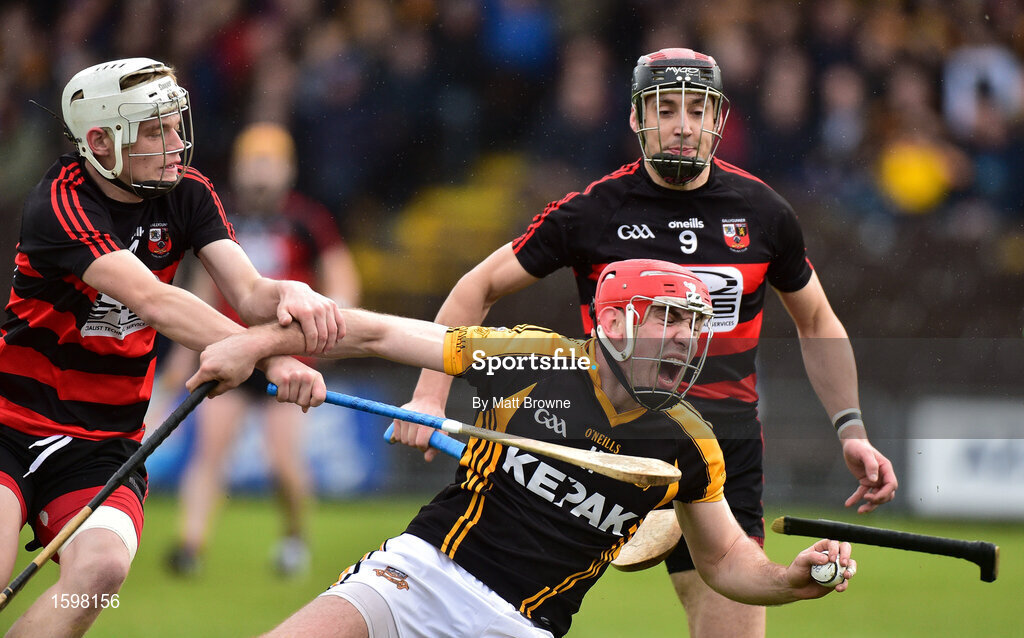 4 November 2018; Niall Deasy of Ballyea in action against Mikey Mahony,left, and Shane O'Sullivan of Ballygunner during the AIB Munster GAA Hurling Senior Club Championship semi-final match between Ballyea and Ballygunner at Walsh Park in Waterford. Photo by Matt Browne/Sportsfile