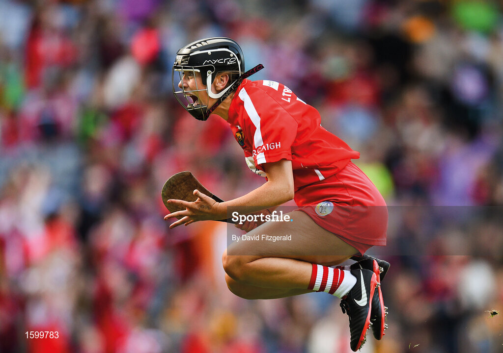 Laura Treacy explodes with joy at the final whistle as Cork cling on to win by a point against arch rivals Kilkenny in the All-Ireland senior camogie final. This image may be reproduced free of charge when used in conjunction with a review of the book "A Season of Sundays 2018". All other usage © SPORTSFILE