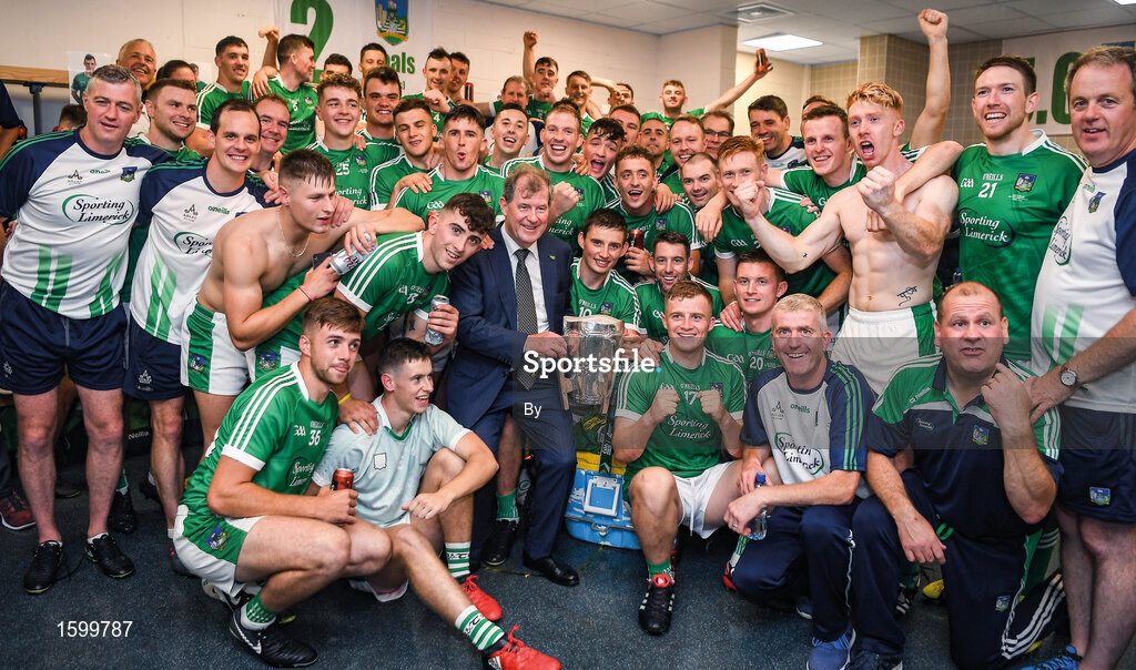 A winning dressing room is a happy dressing room. The Limerick players and backroom, including manager John Kiely, celebrate victory in the company of their long-time supporter and sponsor JP McManus. This image may be reproduced free of charge when used in conjunction with a review of the book "A Season of Sundays 2018". All other usage © SPORTSFILE