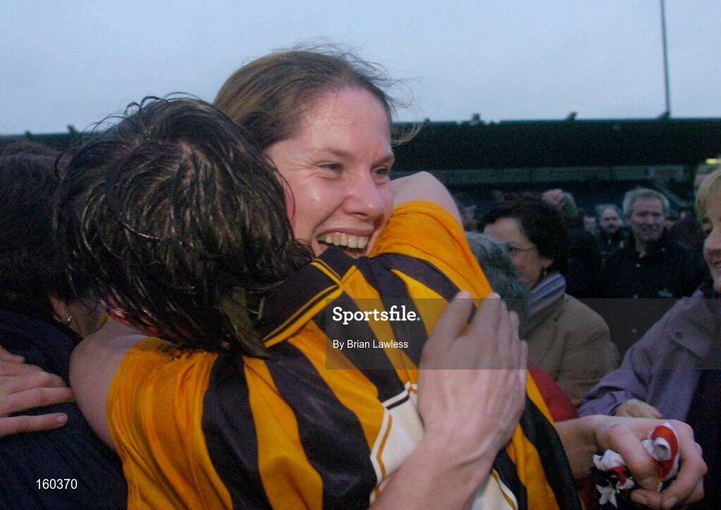 7 November 2004; Margaret Kavanagh, right, St. Lachtains Freshford, celebrates with team-mate Aoife Fitzpatrick after victory in the final. All-Ireland Senior Camogie Club Final, Granagh-Ballingarry v St. Lachtains Freshford, Parnell Park, Dublin. Picture credit; Brian Lawless / SPORTSFILE