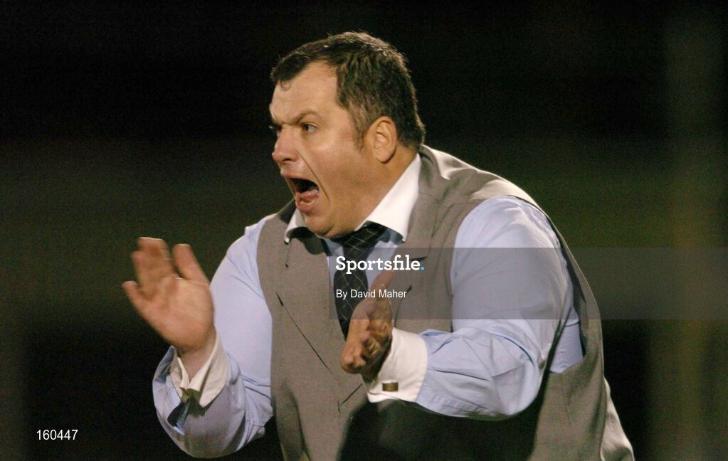 8 November 2004; Pat Dolan, Cork City manager, cheers on his team during the game. eircom league, Premier Division, Cork City v Drogheda United, Turners Cross, Cork. Picture credit; David Maher / SPORTSFILE
