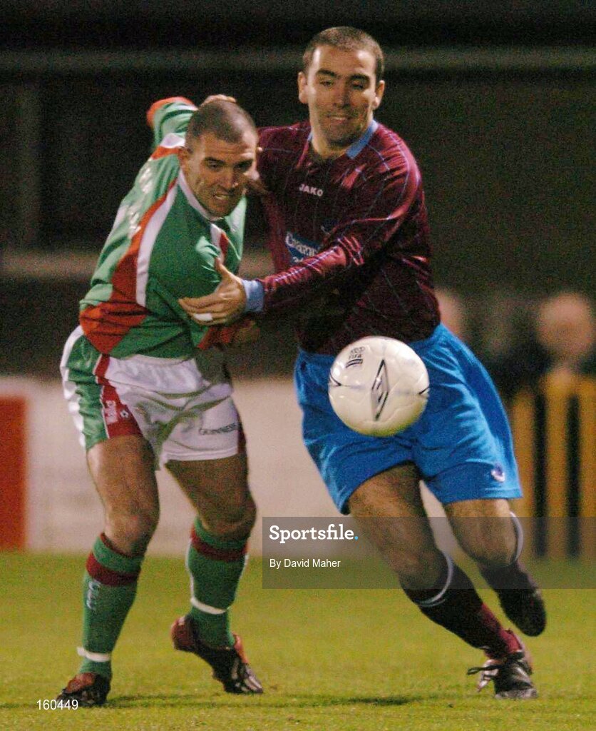 8 November 2004; Greg O'Halloran, Cork City, in action against Andy Myler, Drogheda United. eircom league, Premier Division, Cork City v Drogheda United, Turners Cross, Cork. Picture credit; David Maher / SPORTSFILE