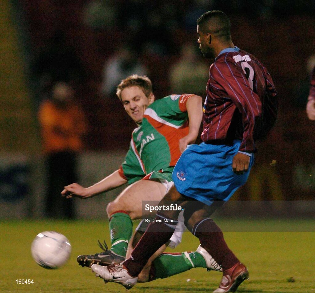 8 November 2004; Jermaine Sandvliet, Drogheda United, in action against Kevin Doyle, Cork City. eircom league, Premier Division, Cork City v Drogheda United, Turners Cross, Cork. Picture credit; David Maher / SPORTSFILE