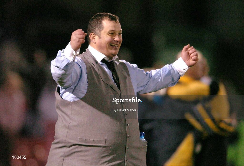 8 November 2004; Pat Dolan, Cork City manager, celebrates at the end of the game after victory over Drogheda United. eircom league, Premier Division, Cork City v Drogheda United, Turners Cross, Cork. Picture credit; David Maher / SPORTSFILE