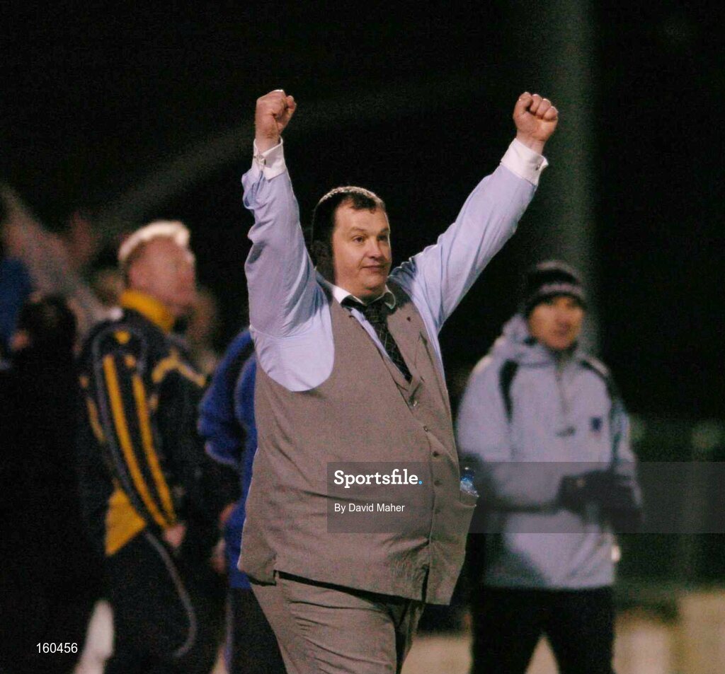 8 November 2004; Pat Dolan, Cork City manager, celebrates at the end of the game after victory over Drogheda United. eircom league, Premier Division, Cork City v Drogheda United, Turners Cross, Cork. Picture credit; David Maher / SPORTSFILE