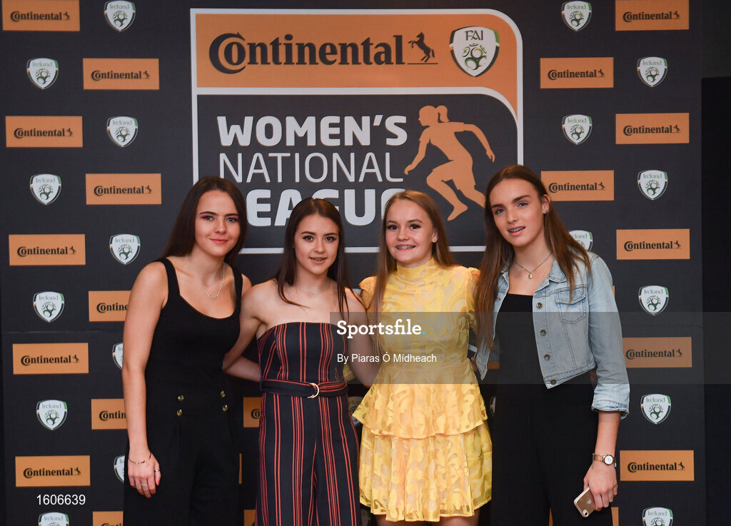 9 November 2018; Shelbourne WFC players, from left, Oleta Griffin, Emily Whelan, Isibeal Atkinson and Rebecca Cooke upon arrival at the Continental Tyres Women’s National League Awards at Ballsbridge Hotel, in Dublin. Photo by Piaras Ó Mídheach/Sportsfile