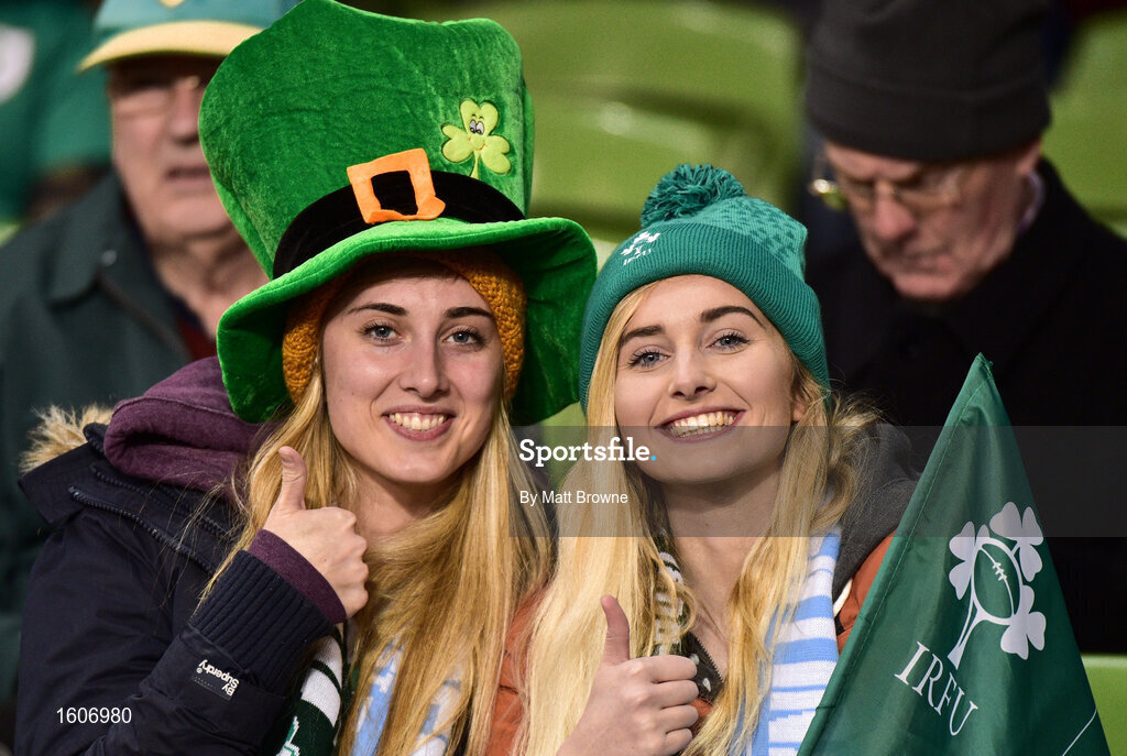 10 November 2018; Ireland supporters Clodagh Cousins, left, with her sister Cora, from Kilmore, Co Wexford, prior to the Guinness Series International match between Ireland and Argentina at the Aviva Stadium in Dublin. Photo by Matt Browne/Sportsfile