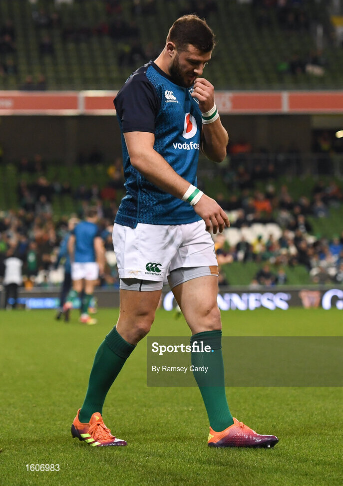 10 November 2018; Robbie Henshaw of Ireland leaves the pitch after picking up an injury during the warm up prior to the Guinness Series International match between Ireland and Argentina at the Aviva Stadium in Dublin. Photo by Ramsey Cardy/Sportsfile
