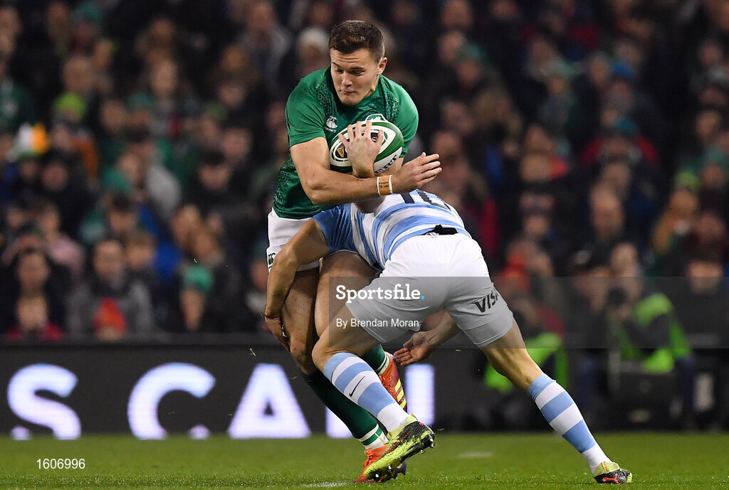 10 November 2018; Jacob Stockdale of Ireland is tackled by Nicholas Sanchez of Argentina during the Guinness Series International match between Ireland and Argentina at the Aviva Stadium in Dublin. Photo by Brendan Moran/Sportsfile
