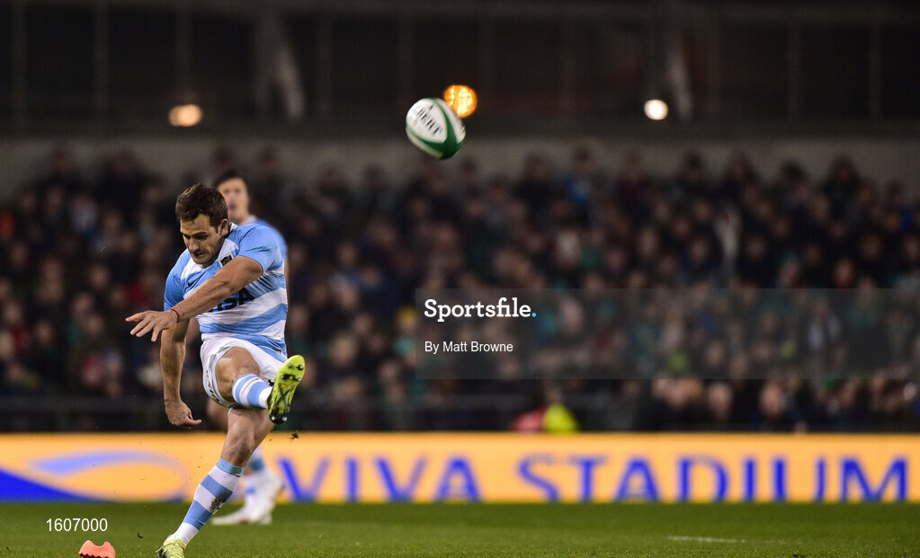 10 November 2018; Nicholas Sanchez of Argentina kicks a penalty during the Guinness Series International match between Ireland and Argentina at the Aviva Stadium in Dublin. Photo by Matt Browne/Sportsfile