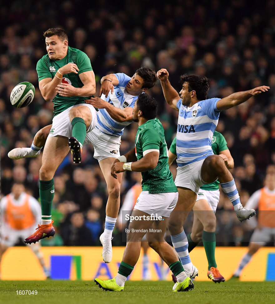 10 November 2018; Jacob Stockdale of Ireland and Bautista Delguy of Argentina compete for possession during the Guinness Series International match between Ireland and Argentina at the Aviva Stadium in Dublin. Photo by Brendan Moran/Sportsfile
