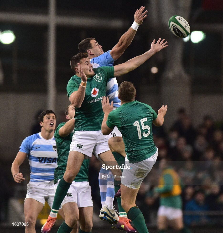 10 November 2018; Emiliano Boffelli of Argentina in action against Jacob Stockdale, left, and Jordan Larmour of Ireland during the Guinness Series International match between Ireland and Argentina at the Aviva Stadium in Dublin. Photo by Matt Browne/Sportsfile