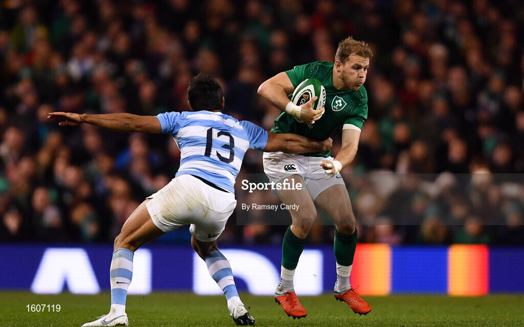 10 November 2018; Will Addison of Ireland is tackled by Matias Orlando of Argentina during the Guinness Series International match between Ireland and Argentina at the Aviva Stadium in Dublin. Photo by Ramsey Cardy/Sportsfile