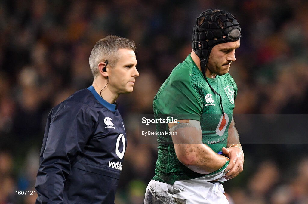 10 November 2018; Sean O’Brien of Ireland leaves the pitch with an injury with team doctor Ciaran Cosgrave during the Guinness Series International match between Ireland and Argentina at the Aviva Stadium in Dublin. Photo by Brendan Moran/Sportsfile