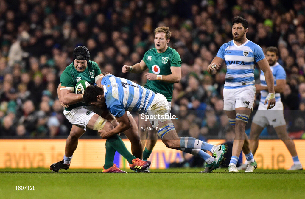 10 November 2018; Sean O’Brien of Ireland is tackled by Guido Petti, left and Santiago Medrano of Argentina during the Guinness Series International match between Ireland and Argentina at the Aviva Stadium in Dublin. Photo by Matt Browne/Sportsfile