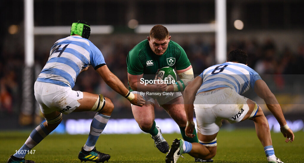 10 November 2018; Tadhg Furlong of Ireland in action against Matias Alemanno, left, and Javier Ortega Desio of Argentina during the Guinness Series International match between Ireland and Argentina at the Aviva Stadium in Dublin. Photo by Ramsey Cardy/Sportsfile