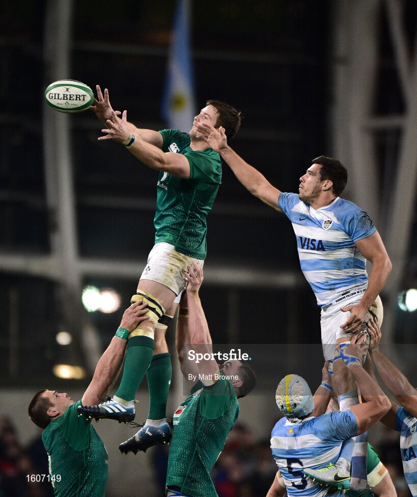 10 November 2018; Iain Henderson of Ireland competes for a lineout with Guido Petti of Argentina during the Guinness Series International match between Ireland and Argentina at the Aviva Stadium in Dublin. Photo by Matt Browne/Sportsfile